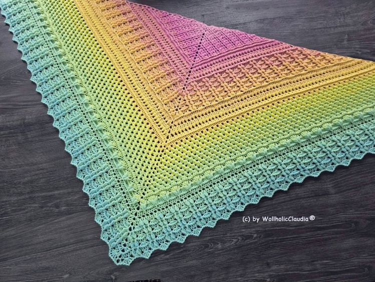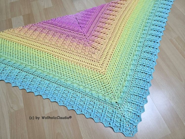 Die Häkelanleitung für das Dreickstuch besteht aus tollen, abwechslungsreichen Mustern und ist auf insgesamt 7 Teile aufgeteilt, wobei das letzte Muster noch beliebig erweitert werden kann.
