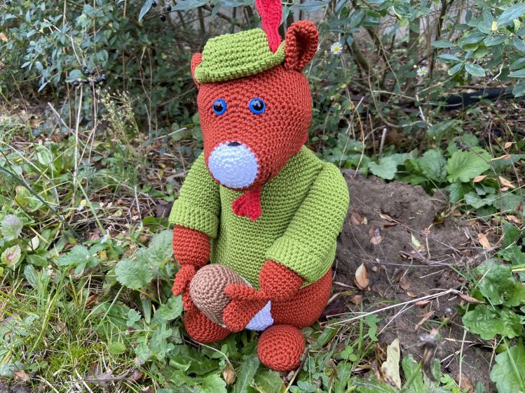 Unter Verwendung des angegebenen Materials wird Edgar Eichhörnchen ca. 30 cm groß.