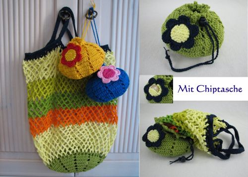 für ein Einkaufsnetz im Beutel und mit integrierter Chiptasche.