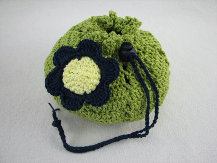 Die kleine Blüte wird am Beutel angenäht und verbirgt in seinen Innern einen Chip oder ein Geldstück.