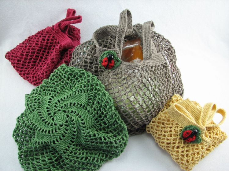 Selbst gehäkelte Einkaufsnetze aus Baumwollgarn sind eine umweltfreundliche Alternative zu den Plastiktüten. Ich habe die Erfahrung gemacht, dass man nie genug davon haben kann, da sie bei mir die Angewohnheit haben, immer wenn sie benötigt werden, unauffindbar zu sein.