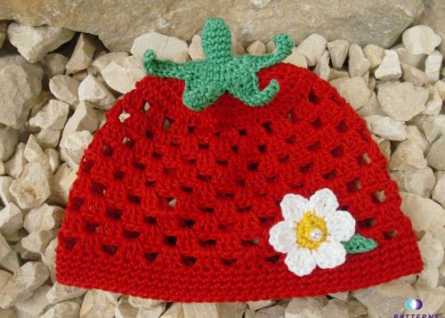 Diese Erdbeermütze ist garantiert ein Blickfang auf Baby's Köpchen. Sie kann auch jederzeit in den Farben der Himbeeren oder der Blaubeeren gehäkelt werden.