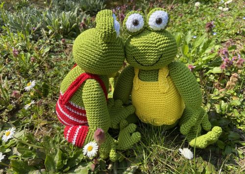 Ich möchte vorsorglich darauf hinweisen, dass es sich hier um die Anleitung und nicht um die fertigen Frösche handelt. Bei Rückfragen helfe ich gerne. Einfach eine Nachricht hier über die Nachrichtenfunktion oder eine Mail an die in der Anleitung angegebene Mailadresse schicken.