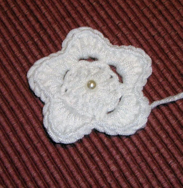 50g Garn ist ausreichend evt. eine Perle für die Blume