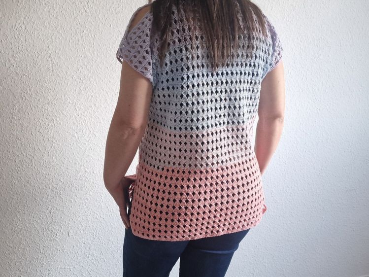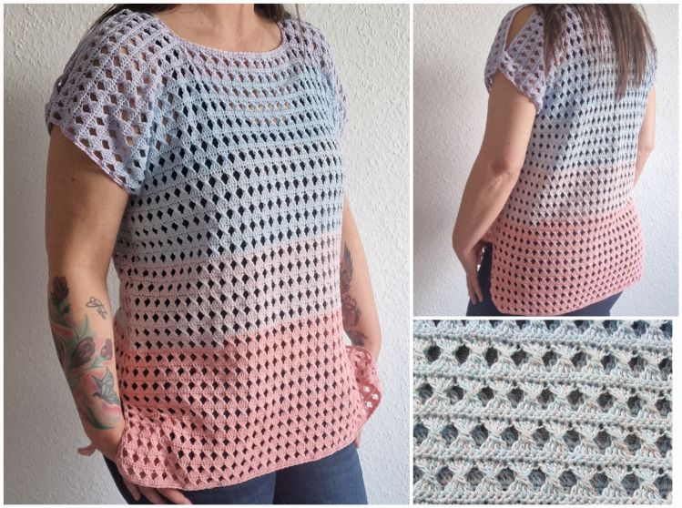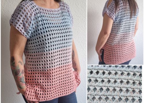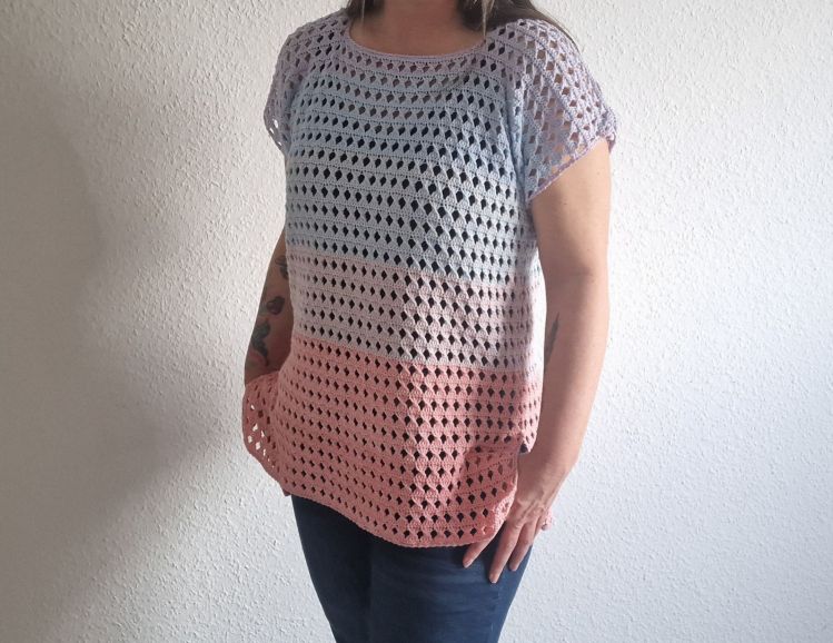 Das Shirt kann in den Größen S - M - L - XL und XXL gehäkelt werden.