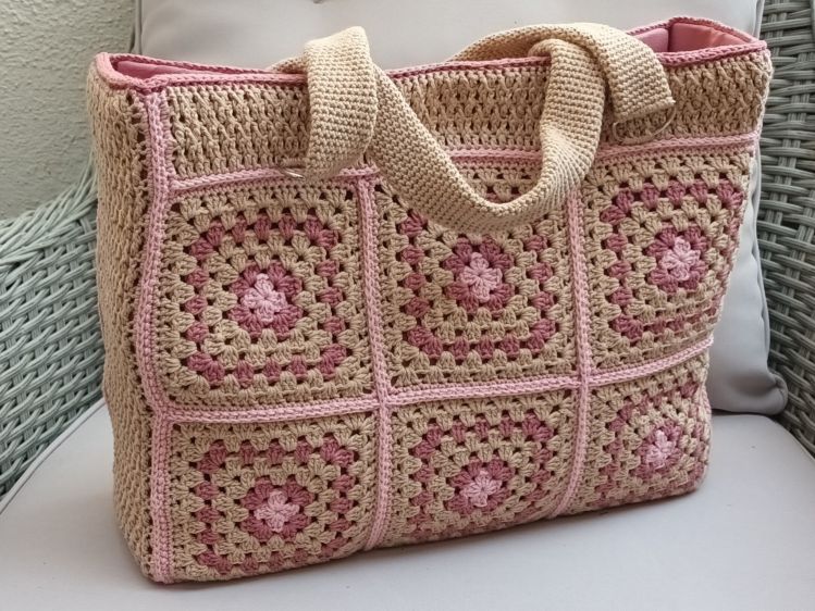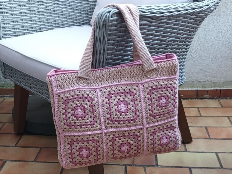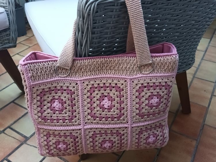 Mit dieser Anleitung kannst Du dir jetzt diese hippe und trendige Tasche häkeln. Du kannst dabei alles selber machen, vom ersten Granny bis zum Filz- und Stoff Inlett. Auch die Henkel sind gehäkelt.