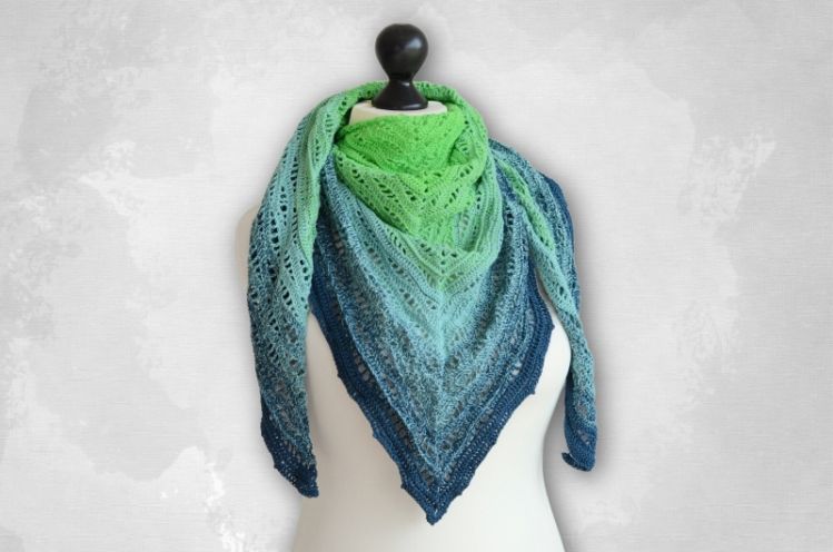 Für das Herstellen eines Häkeltuchs benötigst du zusätzlich Wolle mit einer Lauflänge von mindestens 1000 m. Das Muster kommt am besten mit einem sogenannten Farbverlaufsbobbel zur Geltung.