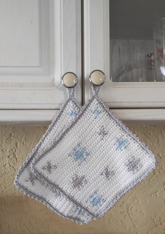Häkelanleitung für einen Topflappen "Schneeflöckchen"