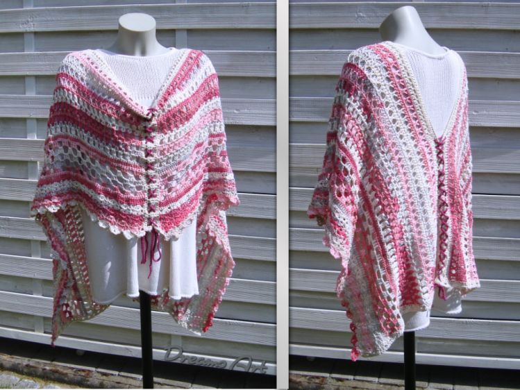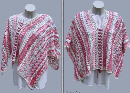 Hier bekommst du in elektronischer Form eine Häkel Anleitung für einen Poncho, der durch seine besondere Schnürtechnik in verschiedenen Varianten getragen werden kann. Sogar als shrug / Bolero kann dieser Poncho getragen werden. Egal ob mit Farbverlaufsgarnen, einfarbig oder pro Muster eine andere Farbe. Dieser Poncho macht sicher schon beim Häkeln sehr viel Spaß. Durch den wundervollen Mustermix kommt auch beim Häkeln schon keine Langeweile auf. Sicher sind der eigenen Kreativität keine Grenzen gesetzt.