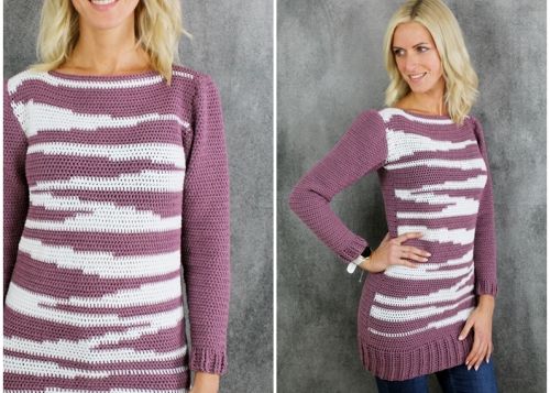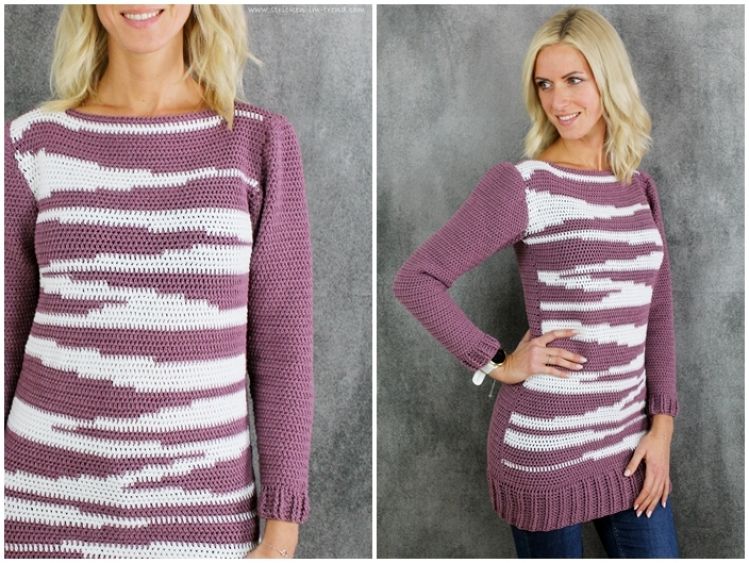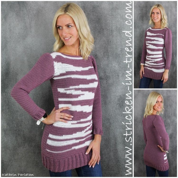 Zur Verdeutlichung sind auch 2 Auszüge aus der Häkelschrift die Muster betreffend, als auch 5 Charts in vollständiger Häkelschrift (mit Farbaufteilung) einzeln für jede Größe in der Anleitung zu finden.