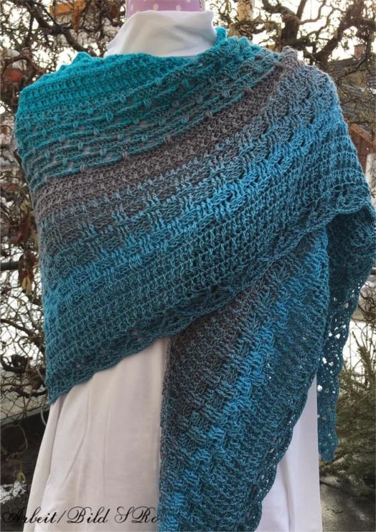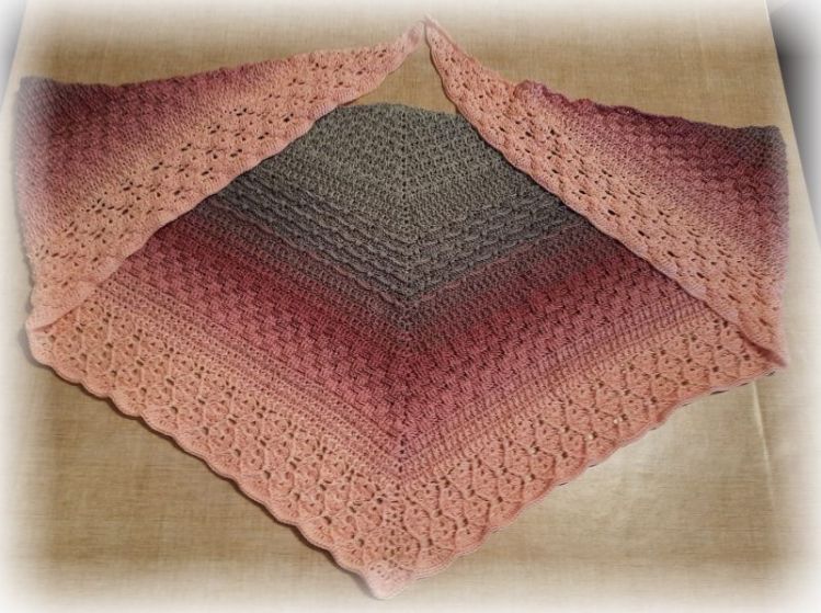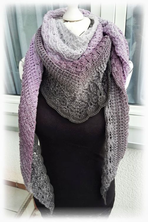 Das Tuch wurde in einem CAL gemeinsam gehäkelt, dabei sind wunderschöne Violas entstanden :-)