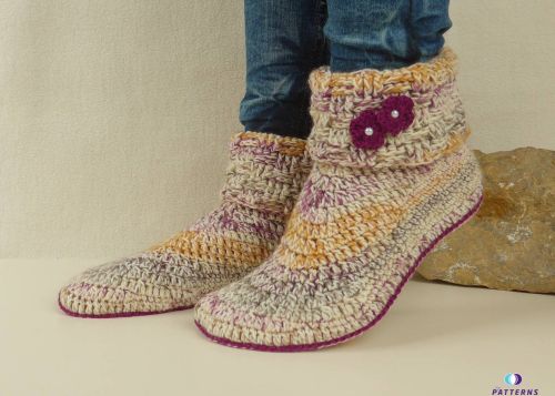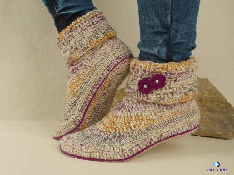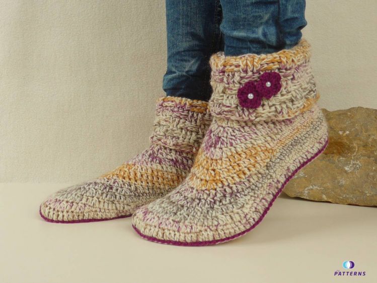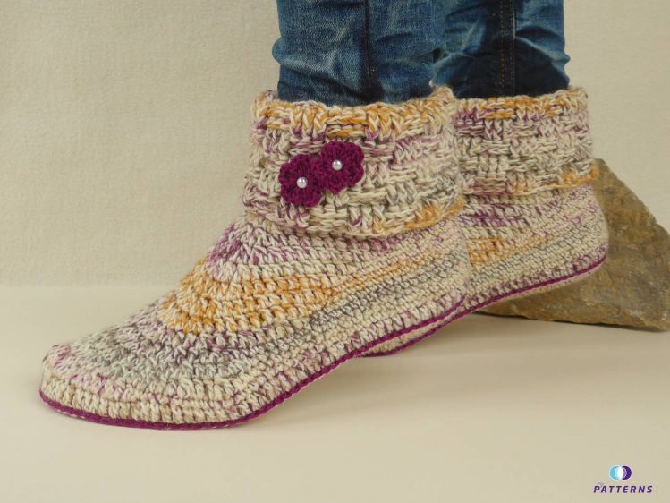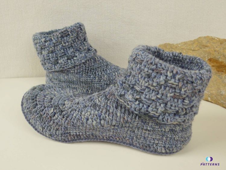 Die kalten Füße im Winter. Wer kennt das nicht? Mit diesen Hausschuhen ist nun Schluss damit. Sie sind stylisch und doch bequem wie gestrickte Socken. Richtig flott wirken sie durch die Schuh-Optik. Für eine perfekte Passform wird die Sohle an der Ferse schmäler gehäkelt.