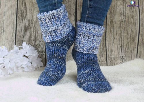 In der Anleitung erkläre ich Schritt für Schritt, wie du zu deinem Ergebnis kommst. Das Muster ist leicht zu merken, so das auch unterwegs gehäkelt werden kann. Ein Blickfang ist garantiert das Bündchen. Dieses macht die Socken zu einem besonderen Hingucker. Die Socken sind bestimmt auch ein Geschenk, über die sich viele freuen!