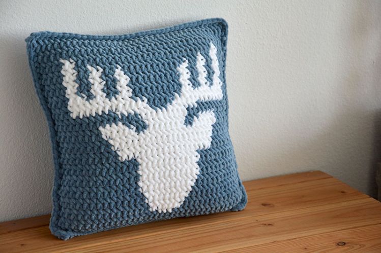Mit der Häkelanleitung kannst du ganz einfach das Hirsch Kissen selber häkeln. Ob für dich selbst oder als Geschenk zu Geburtstag, Weihnachten oder Einweihung. Gehäkelt aus myboshi Samt ist das Kissen kuschelig weich