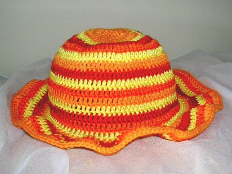Dieser Sommerhut aus einem leichten Baumwollgarn kann von jedem in nur wenigen Stunden gehäkelt werden, der Kettmaschen, Luftmaschen und Stäbchen beherrscht.