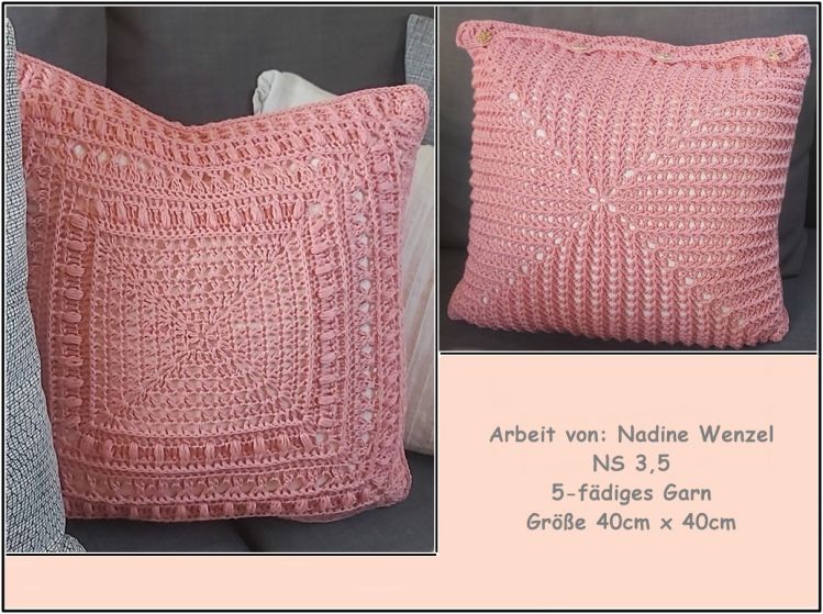 Das Material ist natürlich abhängig von der Kissengröße, der Garnstärke, der Nadelstärke.
