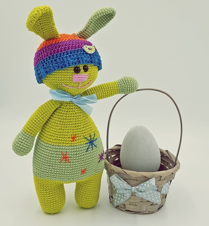 „Matti“ mit seinem treuherzigen Blick gehört nicht nur in jedes Osternest, sondern darf auch als ständiger „Knuddelbegleiter“ nicht fehlen.