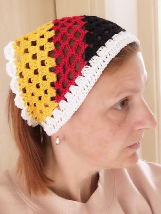 Das Kopftuch kann individuell angepasst werden. Wer Lust hat, kann auch aus einem Bobbel ein Tuch zaubern.