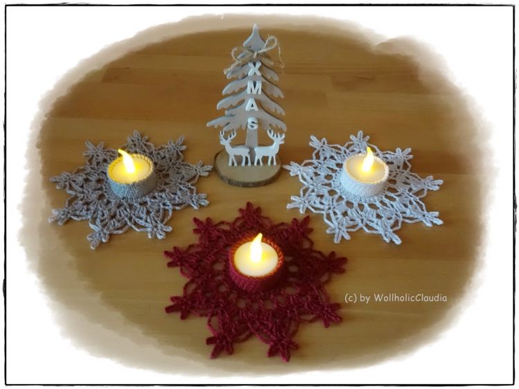 Ein Teelichthalter für eine wunderschöne Tischdekoration oder ein toller Stern für ans Fenster, den Weihnachtsbaum oder einfach zum Verschenken. Ein paar Wollreste genügen und schon kanns losgehen.