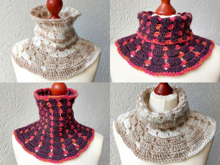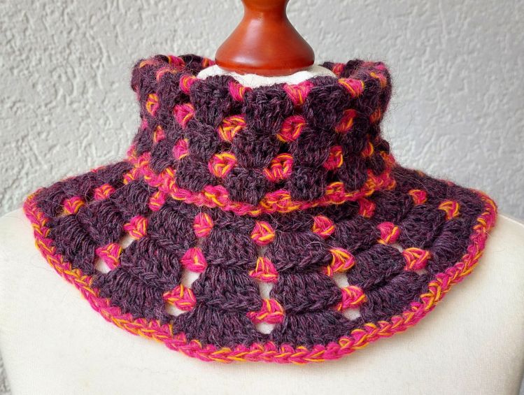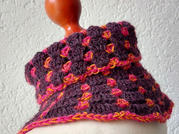 Der Kragenschal kann einfarbig oder zweifarbig gehäkelt werden. Das Muster lässt sich sehr gut häkeln und ist auch für Anfänger geeignet. Im unteren Abschnitt gewinnt der Loop an Weite und bedeckt so auch schön den Nacken. Ist er aufgerollt, reicht er bis über die Ohren. Die Größe kann sehr leicht angepasst werden. Er kann auch sehr gut als Kinderloop gehäkelt werden. Die Häkelanleitung beinhaltet eine Schritt für Schritt Bildbeschreibung und eine Häkelschrift, sowie eine Textbeschreibung (Rundenweise). Für den zweifarbigen Loop erkläre ich den Farbwechsel. Beide Farben laufen mit, so müssen wir später weniger Fäden vernähen. Es ist NICHT nötig das Ihr die Häkelschrift lesen könnt. Bei Fragen stehe ich zeitnah zur Verfügung.