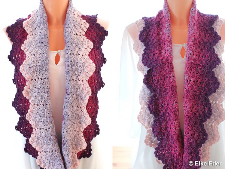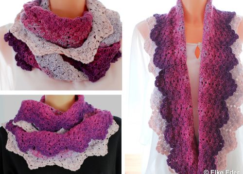 Dieser originelle Loop ist ein absoluter Hingucker. Das Zackenmuster und insbesondere der Zackenrand, sowie der schöne Farbverlauf machen ihn zu einem besonderen Blickfang.