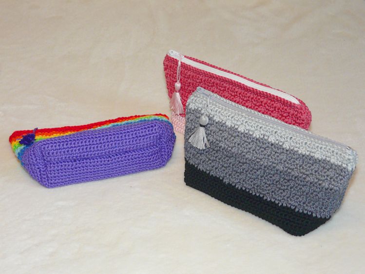 Diese schönen Mäppchen sind sehr schnell gehäkelt und sehr nützlich. Ihr könnt sie als Kosmetiktasche oder Federtasche benutzen. Aber auch für viele andere Sachen ist sie Bestens geeignet. Dank des breiten Bodens lässt sich so einiges in diesen Mäppchen verstauen. Häkelt sie euch in euren Lieblingsfarben. Ob in grautönen, Regenbogenfarben oder dezent zweifarbig, sie sind immer ein Hingucker.