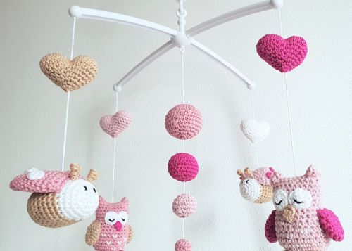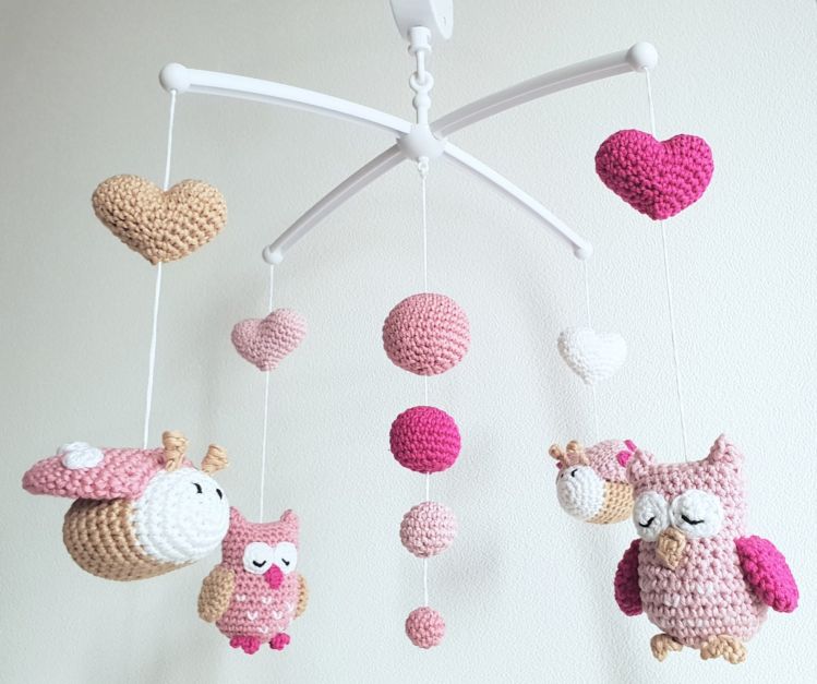 Sanft fliegen Eule und Marienkäfer über dem Baby hin und her. Sie wiegen sich vor und zurück und ziehen mit Ihrer lieblichen Gestaltung und den schönen Farben jede Aufmerksamkeit auf sich.