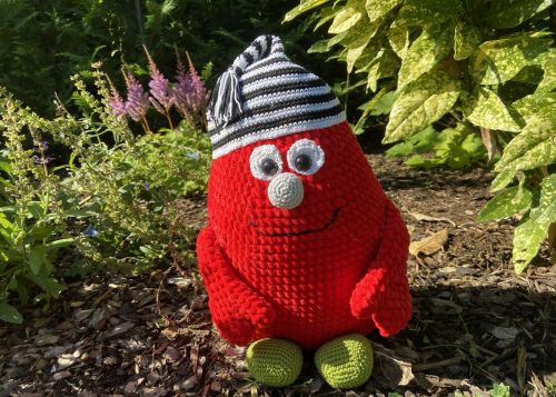 Monster „Berry“ und seine Zipfelmütze sind unzertrennlich. Egal, ob beim Fotoshooting oder beim Knuddeln: ohne seine Mütze fühlt sich Berry, der seinen Namen von seiner roten Farbe hat, einfach nicht wohl.