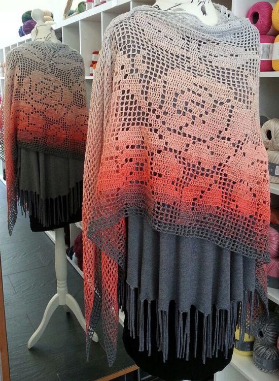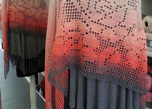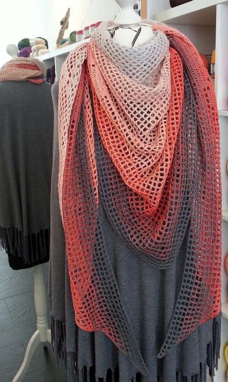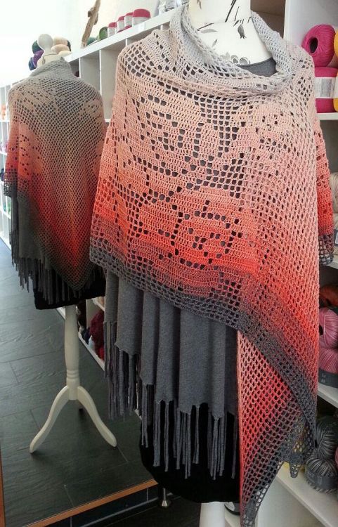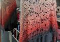 Das Tuch ist aus einem Bobbel 1000m 3fädig gehäkelt. Es ist ca 260cm lang und 100cm breit.