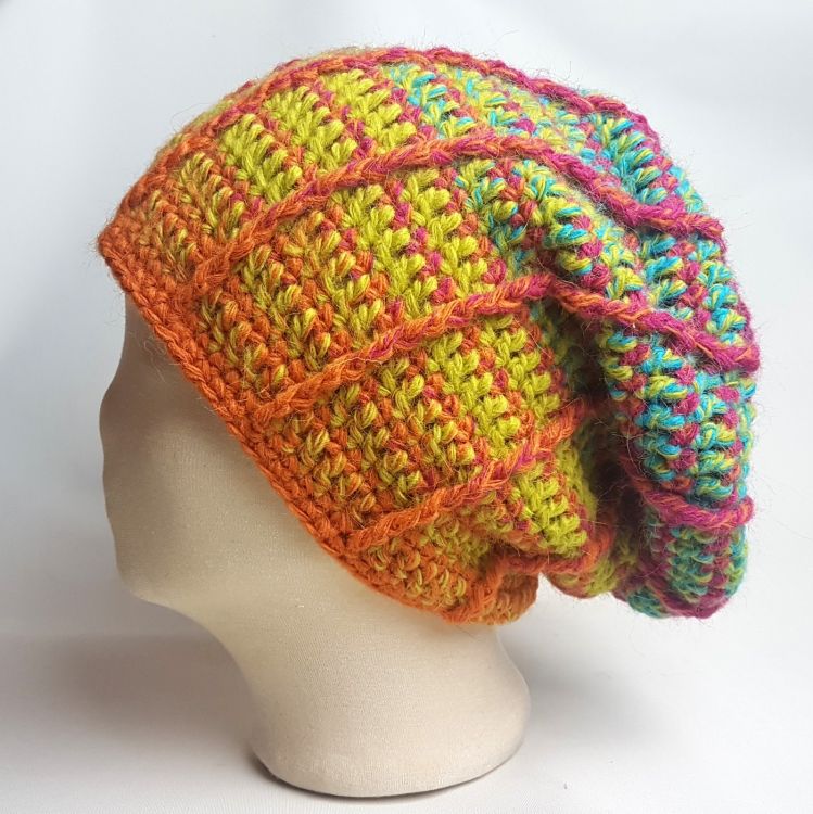 Ob mit Farbverlaufsgarn, uni oder mit zwei Farben - diese Beanie wird die Blicke auf sich ziehen. Das rafinierte Muster kann mit einem Bobbel/Farbverlaufsgarn, uni, oder mit zwei verschiedenen Farben gehäkelt werden. Ich habe die Beanie mit Farbverlaufsgarn gehäkelt und beschreibe Euch, mit 34 Fotos, Textbeschreibung, Häkelschrift und eine Größentabelle, Schritt für Schritt wie sie gehäkelt wird. Die Mütze wird von oben nach unten gehäkelt. Die Anleitung beinhaltet eine Größentabelle für alle Größen mit einem Kopfumfang von 54 cm bis 60 cm. Sie kann aber auch angepasst werden. Ich erkläre Euch Schritt für Schritt wie der UNSICHTBARE Farbwechsel gehäkelt wird, ohne das ein Rundenübergang sichtbar ist. Diese Mütze kann sowohl als Männermütze, Frauenmütze oder Kindermütze gehäkelt werden.