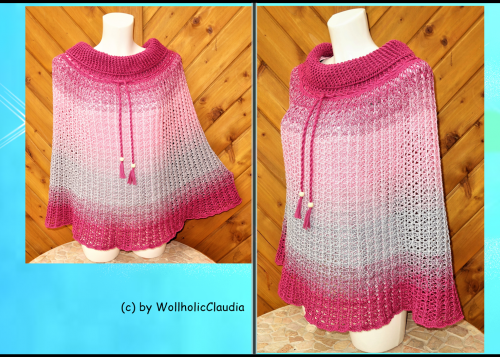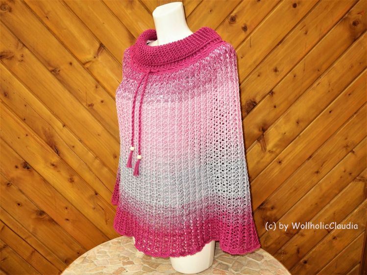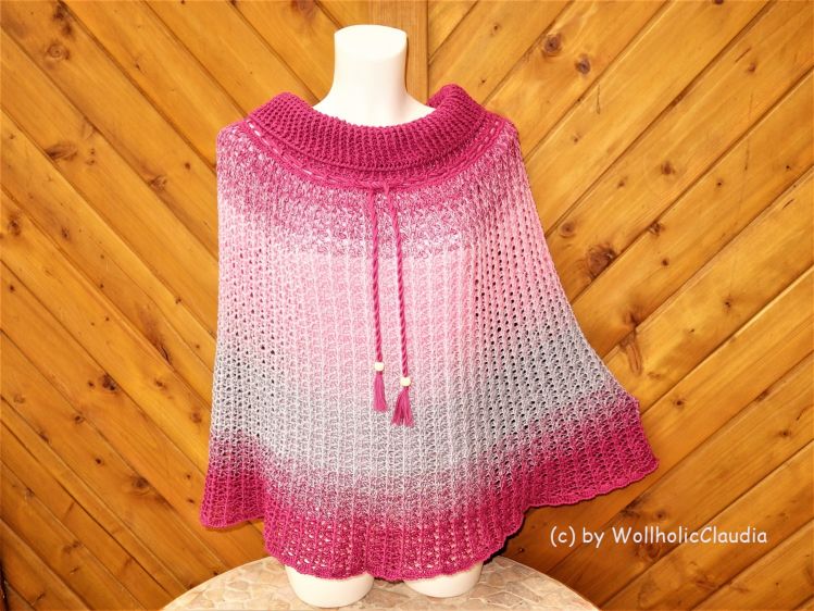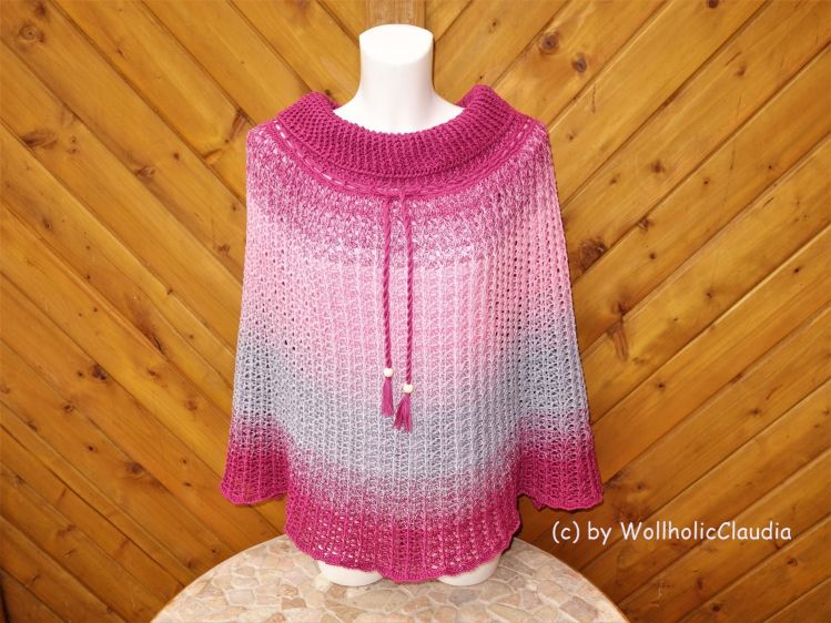 Mit diesem modernen Poncho liegst du voll im Trend, er ist ein wunderschöner Blickfang und perfekt für kühle Sommerabende. Einfach überziehen, evtl. den Kragen zuziehen und das Wetter kann dir nichts mehr anhaben.