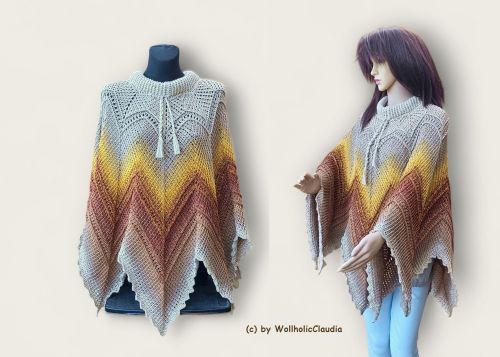Die Angaben sind natürlich abhängig von der Ponchogröße, Nadel- und Garnstärke !