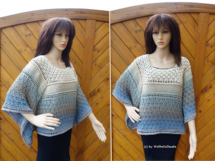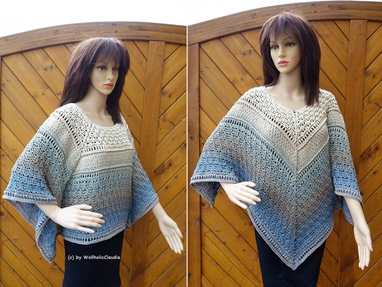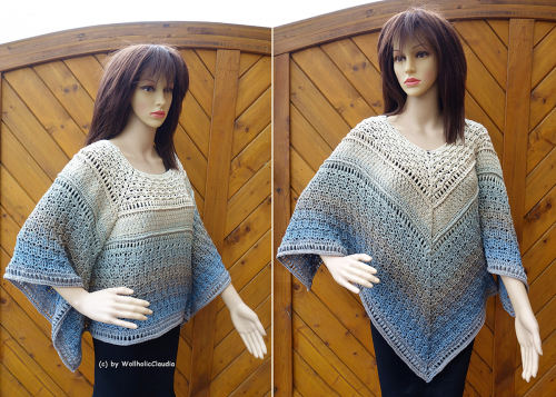Poncho "Florence" hält dich im Herbst und Winter wunderbar warm. Es macht nicht nur Spaß ihn zu häkeln, er sieht auch noch toll aus und kann in 2 Varianten getragen werden. Man kann ihn in jeder beliebigen Größe, Garn- und Nadelstärke angefertigen.