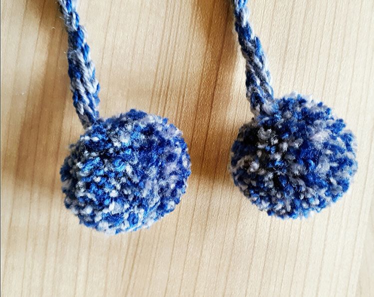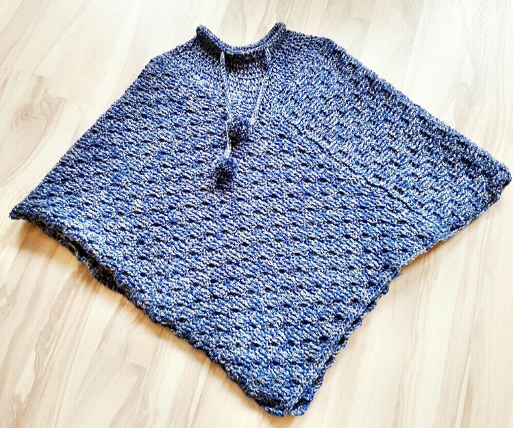 Verwendet wurde hier Gaby uni 50g /133 m, knapp 10 Wollknäule von jeder Farbe. Es kann je nachdem, wie fest gehäkelt wird zu Abweichungen kommen. Die Wolle wird doppelt genommen. Es wird immer ein grauer und ein blauer Faden genommen.