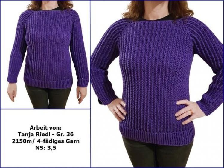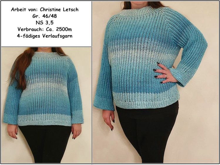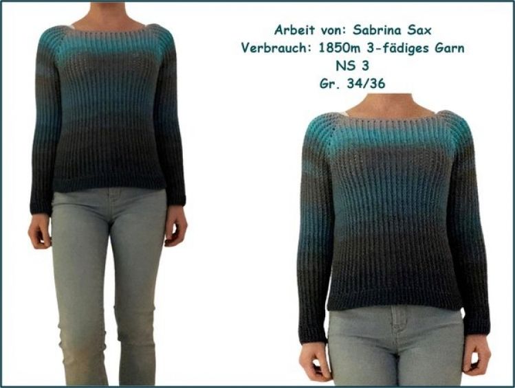 Der Pulli wird von oben nach unten gearbeitet (Rvo) und ist in jeder Größe machbar.