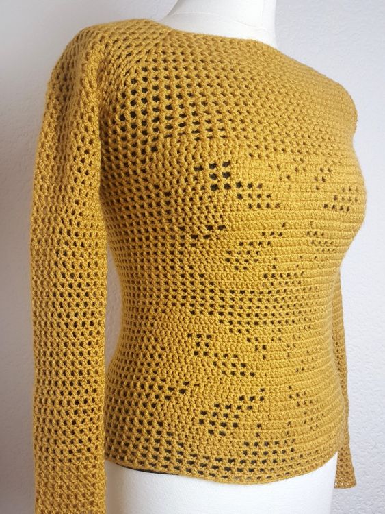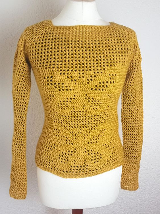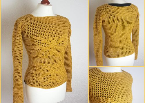 Schmetterlinge schmücken diesen schönen Pullover in Raglan-Technik-von-oben. Er kann in den Größen S-XXXL gehäkelt werden. Der Pulli kann, durch sein Netzmuster (Filettechnik), optimal über Sommertops getragen werden. Wie das Filetmuster gehäkelt wird, ist genau erklärt. Der Pullover kann individuell verlängert werden. Wer es lieber ohne Ärmel mag, lässt sie einfach weg. So wird aus dem Pullover ein schönes Shirt. Die Anleitung beinhaltet eine kleine Fotostrecke zur Filettechnik, eine Größentabelle, Skizze und Häkelschrift, sowie eine Textanleitung. Im Text wird auch genau erklärt, wie Ihr den Pulli mit Farbverlaufsgarn häkelt ohne dafür extra Armbobbel zu verwenden. Bei Rückfrage stehe ich zeitnah zur Verfügung.