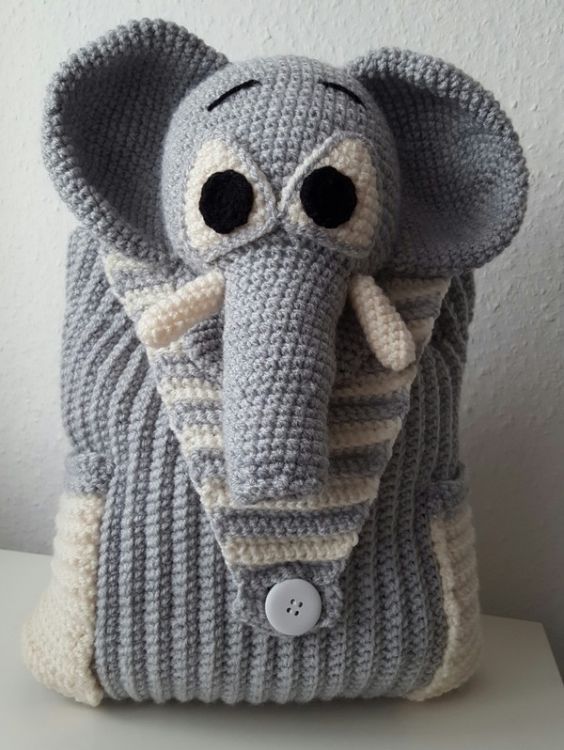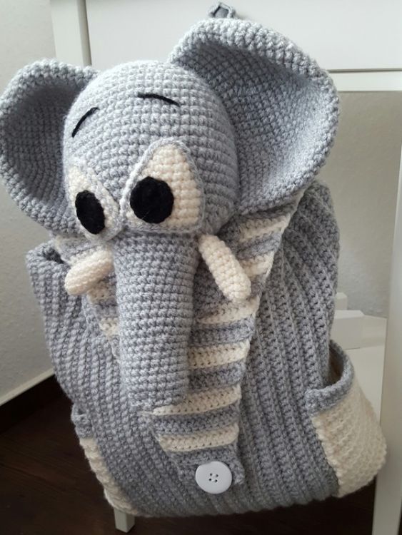Häkelanleitung für einen niedlichen Kinderrucksack Elefant