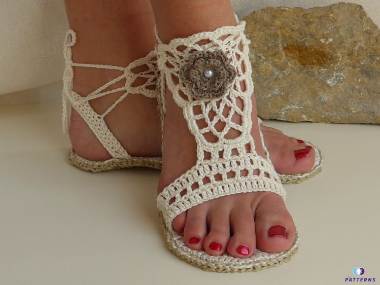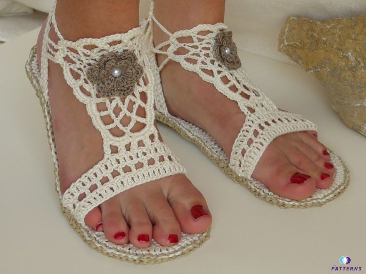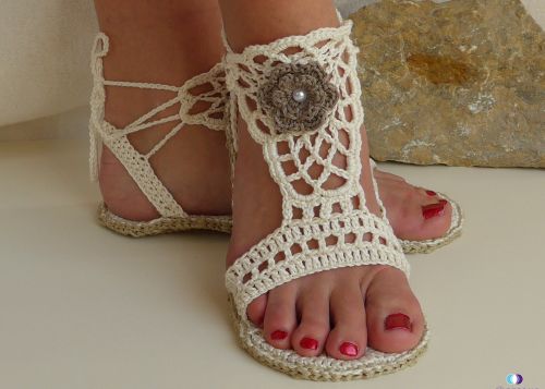 Die Sandalen sind bequem und garantiert ein Blickfang an den Füßen. Durch die gehäkelte Outdoorsohle sind sie auch für die Straße geeignet. Damit sie einen besseren Halt haben, sind Bindebänder angebracht. So passen sie sich dem Fuß individuell an. Endlich einmal Sandalen, die bequem sind und nicht drücken.