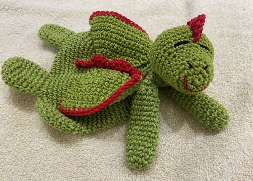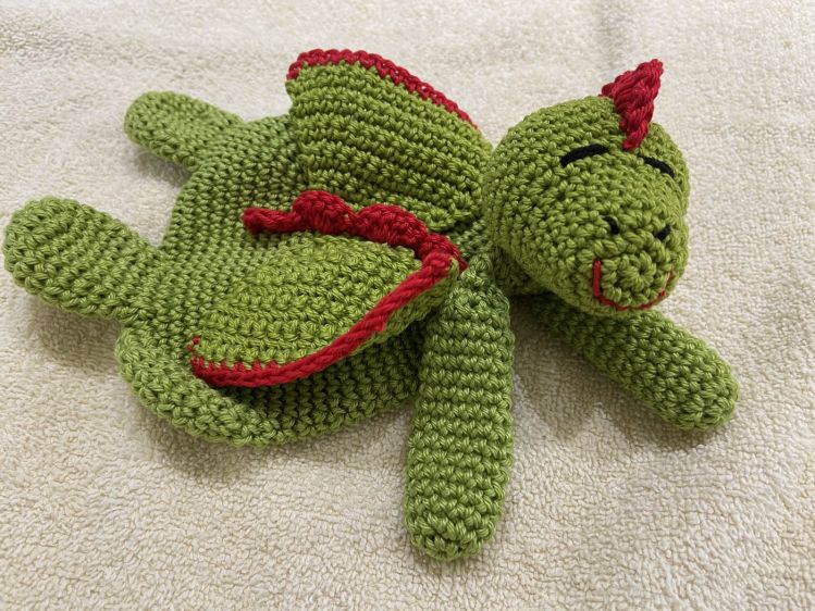 Unter Verwendung des angegebenen Materials wird das Schmusetuch Drache ca. 18 x 20 cm groß