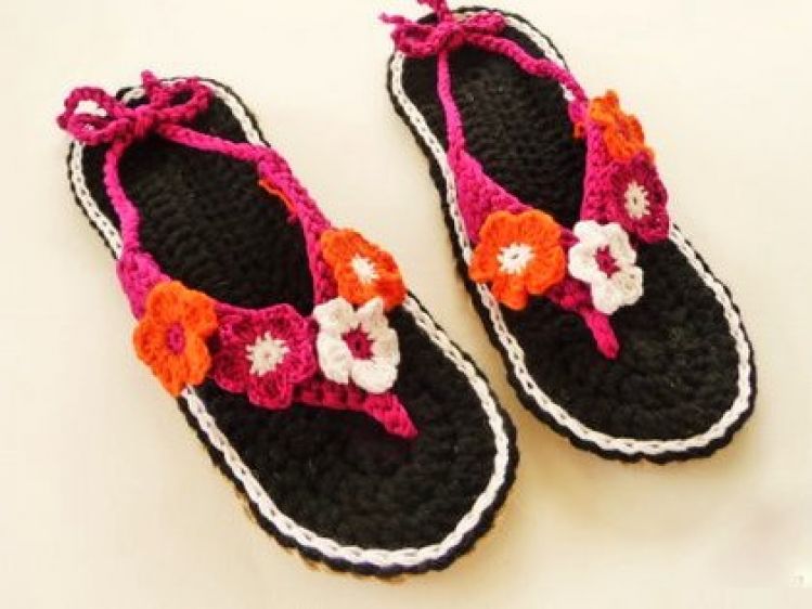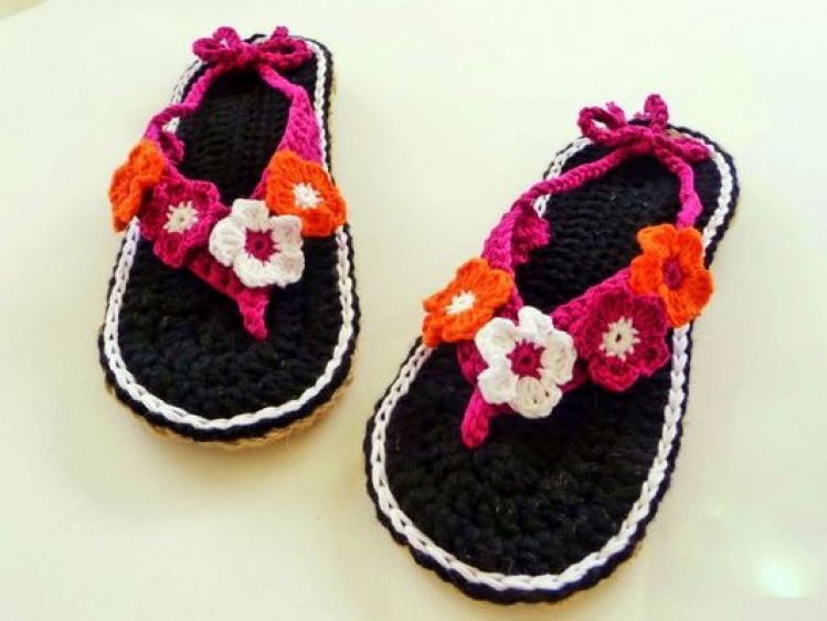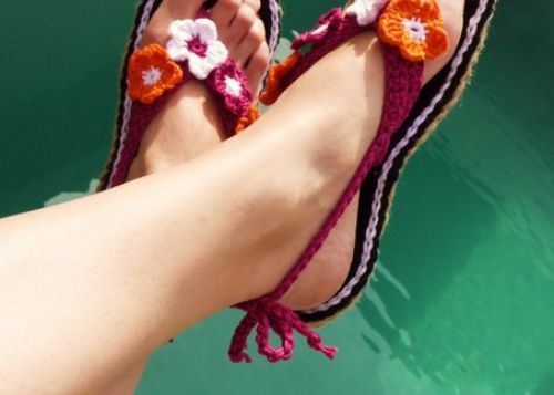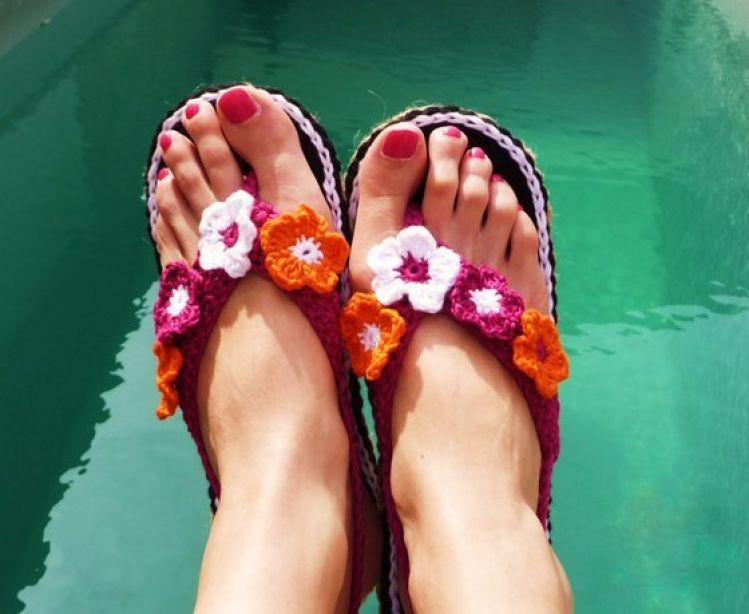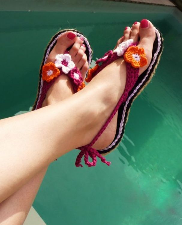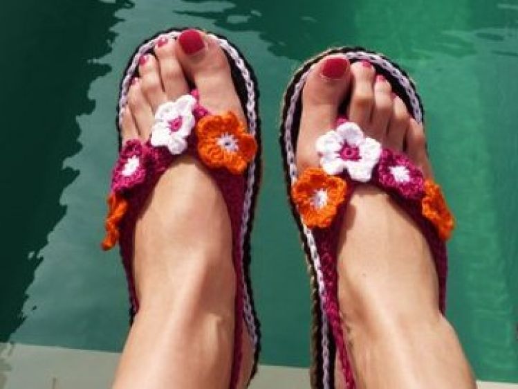 Häkelanleitung - Zehensteg - Sandalen mit Blüten - No.66