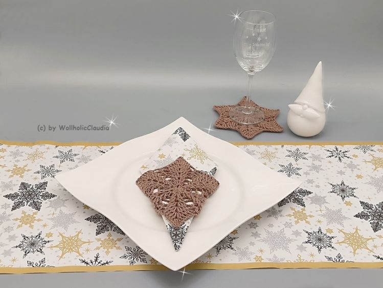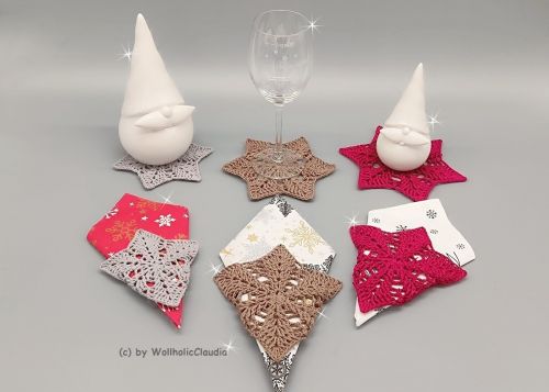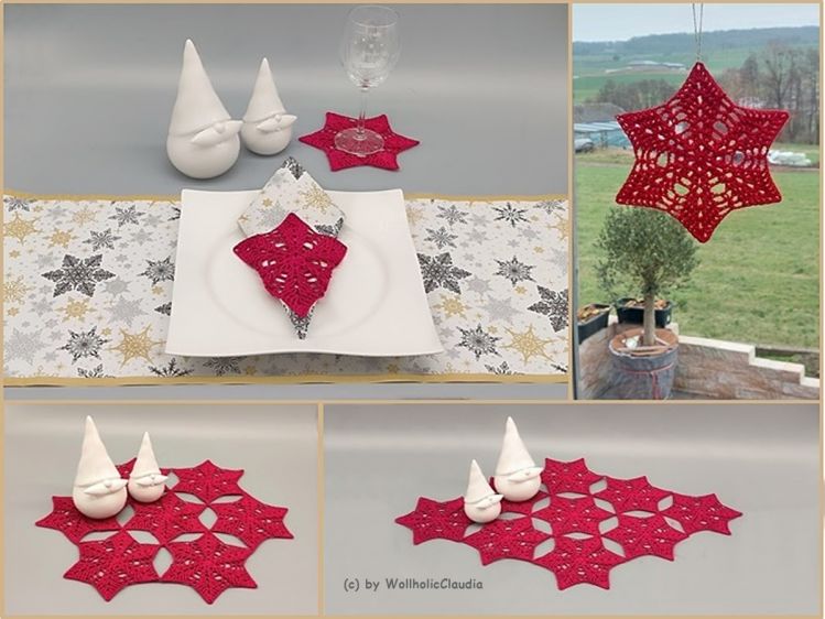 Hier bekommst du eine vielseitige Anleitung, mit der deiner Kreativität keine Grenzen gesetzt sind. Zum Beispiel als Tassenuntersetzer, als Bestecktasche, Serviettenhalter, Fenster- oder Baumschmuck oder sogar als Tischläufer, alles wird für weihnachtliche Stimmung sorgen.