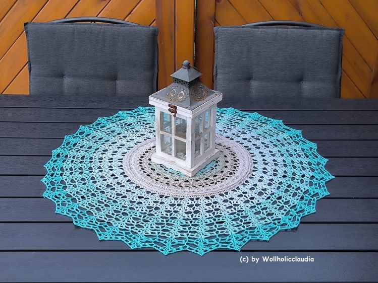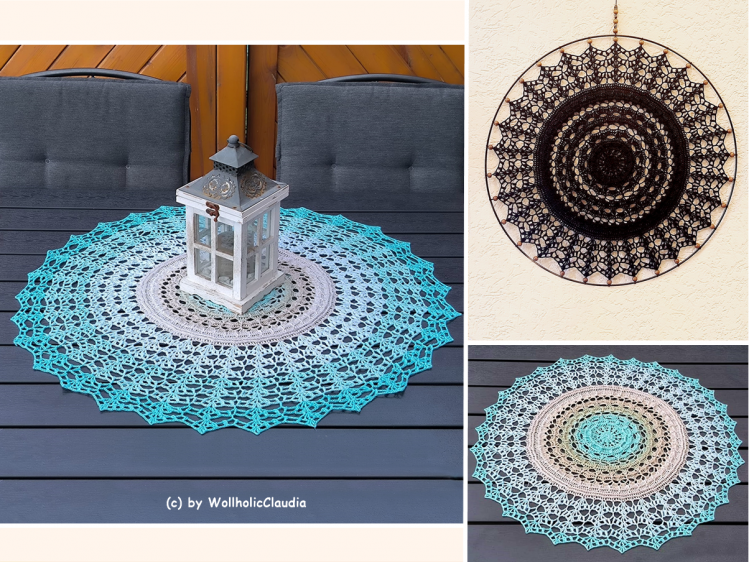 Mit dieser Anleitung kannst du dir eine wunderschöne, runde Mitteldecke oder auch ein hübsches Mandala häkeln. Die Größe kann man individuell gestalten und du kannst mit jedem beliebigen Garn und der dazu passenden Nadelstärke arbeiten.