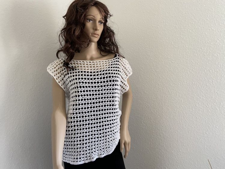 Wenn die Temperaturen hoch sind, dann ist das Shirt "Isabell" genau die richtige Wahl: das Netzmuster, das leicht von der Hand geht, sorgt für genug "Luftigkeit.