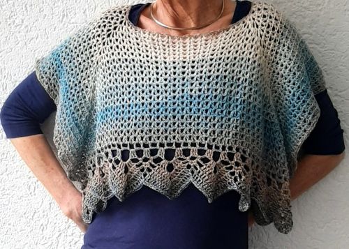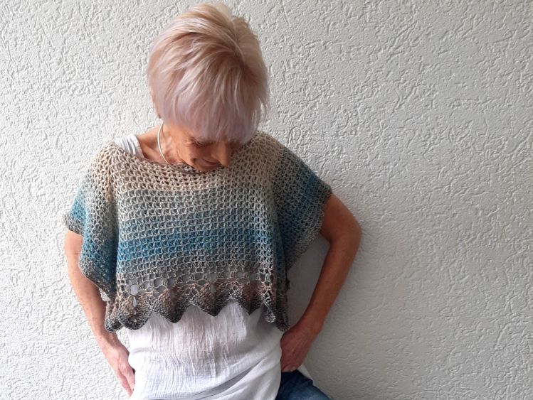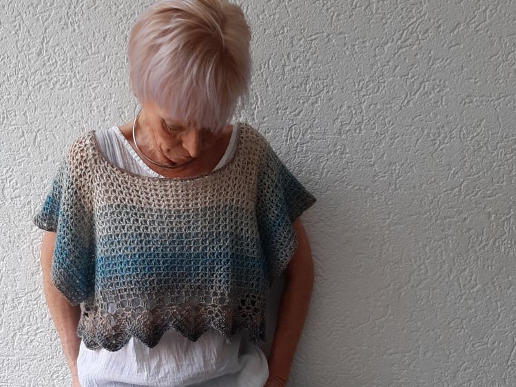 Der „Kleine Begleiter“ ist ein kurzes, lockeres Oberteil das Ihr sehr gut über Top´s oder Sommerkleider tragen könnt. Aber auch in der kühleren Jahreszeit, passt es sehr gut über Langarmshirts. Das Oberteil wird in Raglan von oben Technik gearbeitet, d.h. wir beginnen am Halsausschnitt und nehmen an vier Stellen zu (Armschräge). Es wird in Runden gearbeitet. Nach erreichen der gewünschten Brustbreite, werden die Ärmel geschlossen und wir häkeln den Rumpf. Die Länge könnt Ihr ebenfalls anpassen. Der absolute Blickfang ist die schöne Borte! Anhand von Foto´s erkläre Euch Schritt für Schritt wie Ihr häkeln müsst. Eine Häkelschrift ergänzt die Anleitung (es ist aber nicht unbedingt nötig das Ihr Häkelschrift lesen könnt). Natürlich antworte ich bei Fragen zeitnah!