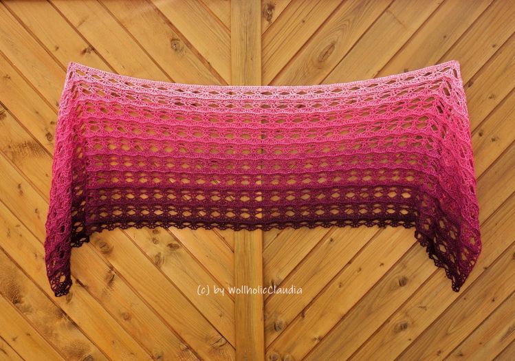 Diese Stola hat ein wunderschönes Muster mit Suchtpotential. Sie kann mit jedem beliebigen Garn und dazu passender Nadelstärke machbar.