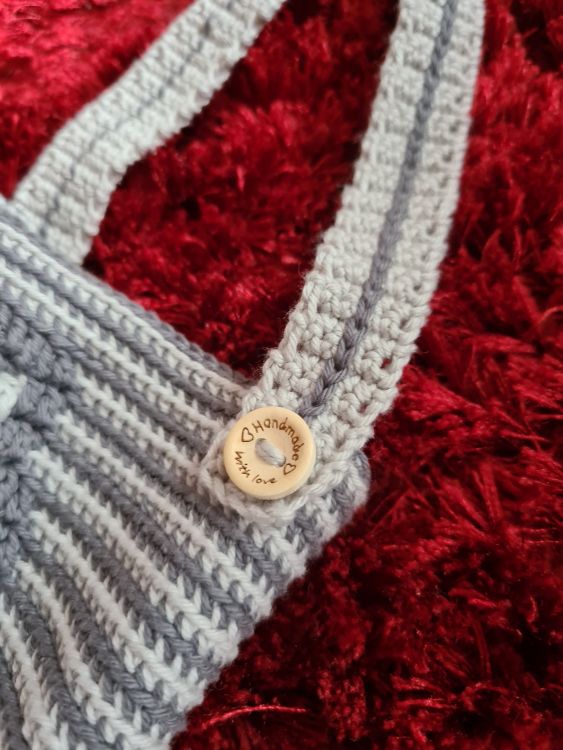 Meine Tasche wurde aus 8/4 Baumwollgarn (Lauflänge pro Knäul 170m pro 50g) mit Nadelstärke 3,0 gehäkelt und hat die ungefähre Größe von 12,5 x 17cm (BxH) erreicht.