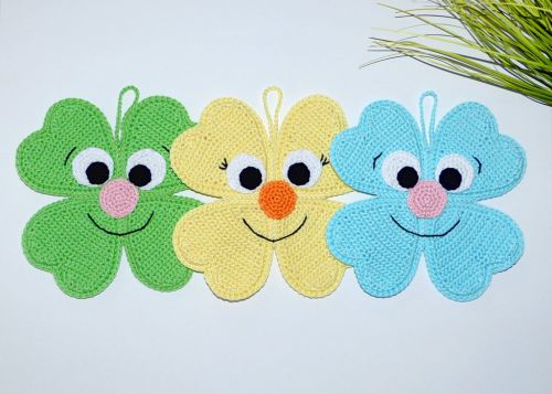 Mit diesen lustigen Topflappen macht das Kochen und Backen noch mehr Spaß. Mit ihren bunten Farben verbreiten sie einfach nur gute Laune und sie sind tolle Glücksbringer. Die Topflappen sind ein perfektes Geschenk oder Mitbringsel für eure Liebsten. Häkelt sie in euren Lieblingsfarben und erfreut euch an dem Anblick von diesen drolligen Gesichtern.