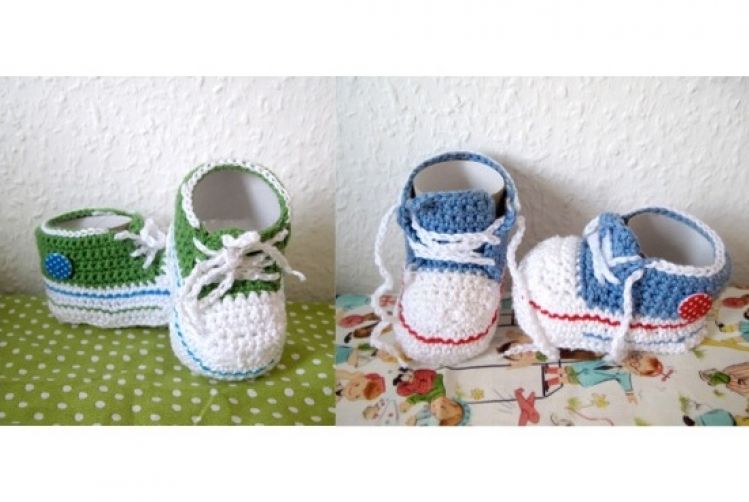 In dieser Anleitung wird ausführlich erklärt wie Anfänger, Fortgeschrittene und Profis die Schuhe in Gr. 17 selbst häkeln können.