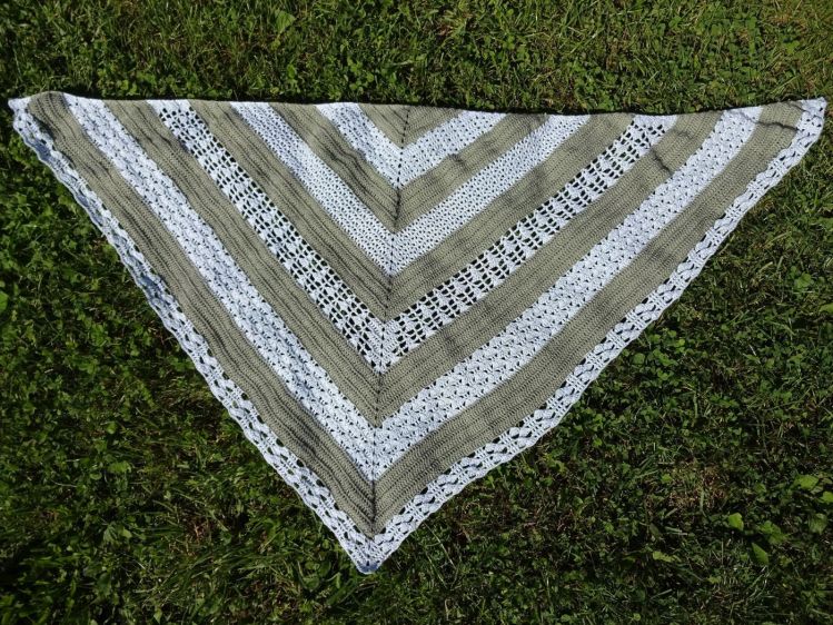 Unifarbenes Garn, im Wechsel mit einem Farbverlaufsgarn, machen dieses Tuch zu einem idealen Begleiter.