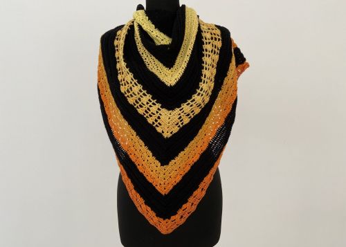 Unter Verwendung des angegebenen Materials wird das Tuch ca. 140 cm breit und an der Spitze ca. 75 cm tief.
